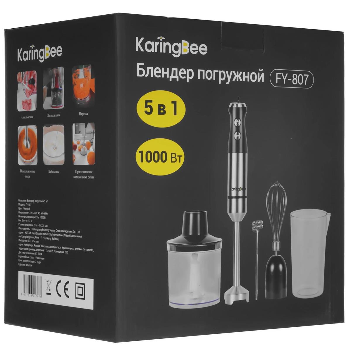 Блендер KaringBee FY-807 (погружной/1000 Вт/серебристый, черный) - Интернет-магазин Электроника: бытовая техника, электроника, товары для дома и др.