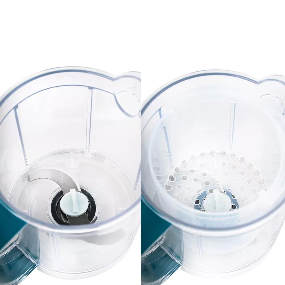 Блендер-пароварка Kitfort КТ-2305 готовит в два приёма: варит на пару, а затем измельчает и смешивает. Для прикорма маленьких детей приготовленную пищу необходимо измельчить до нужной консистенции.