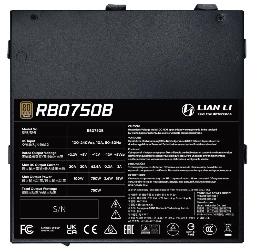 Блок питания Lian Li BX0750B Black (G9P.BX0750B.B000.RU) (750 Вт )