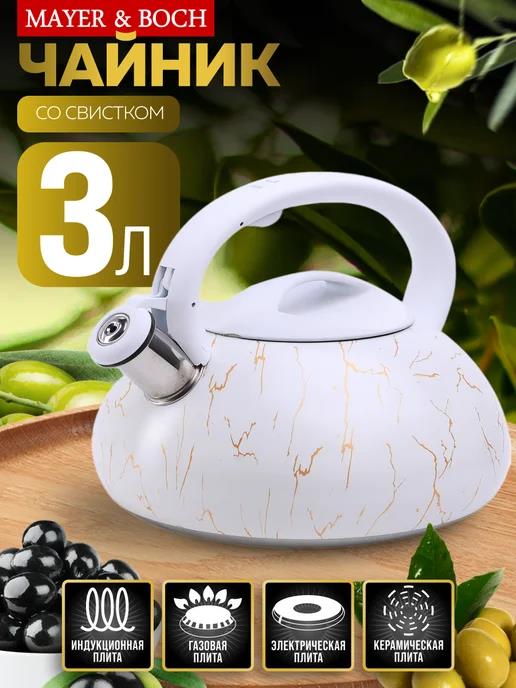 Чайник MAYER & BOCH 31246 (3, л л /мрамор, белый)