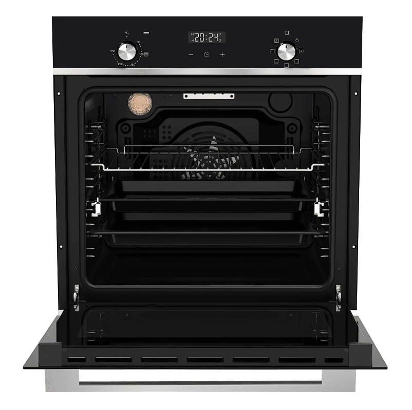 Haier HOX-P06HGBX — это встраиваемый электрический духовой шкаф объемом 76 литров, отличающийся современным дизайном с черным стеклянным фасадом и элементами из нержавеющей стали.