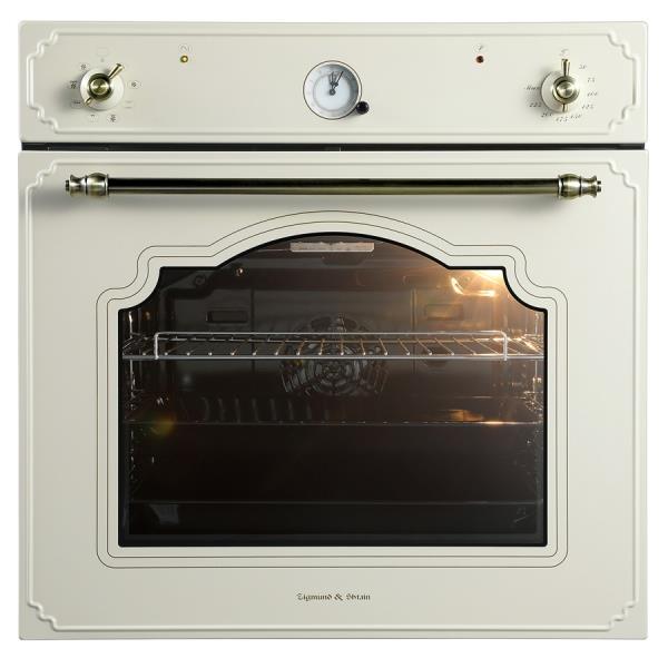 Электрический духовой шкаф Zigmund & Shtain E 135 X, выполненный в ретро-стиле, выглядит эффектно и очень удобен в обращении. У него большой объем (67 л), есть гриль и конвекция. Рабочий диапазон температур от 50 до 250 °C. В него укладываются практически все рецепты – от меренги до хлеба на закваске с хрустящей корочкой. Zigmund & Shtain E 135 X оснащен противнем с телескопическими направляющими: его не нужно поддерживать на весу, очень удобно добавлять ингредиенты, приправы, украшать блюдо, уложенное на него. Для облегчения ухода за прибором его стенки покрыты эмалью легкой очистки, а внутреннее стекло вынимается из дверцы. Таймер служит для оповещения о времени, когда блюдо готово или пора с ним что-то сделать.