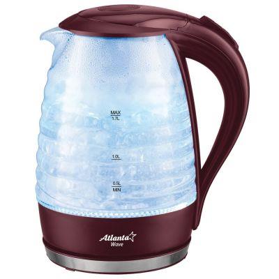 Электрический чайник Atlanta ATH-2467 (2200 Вт/1,7 л /стекло, пластик/бордовый, прозрачный)