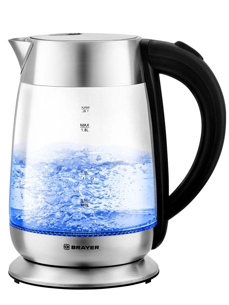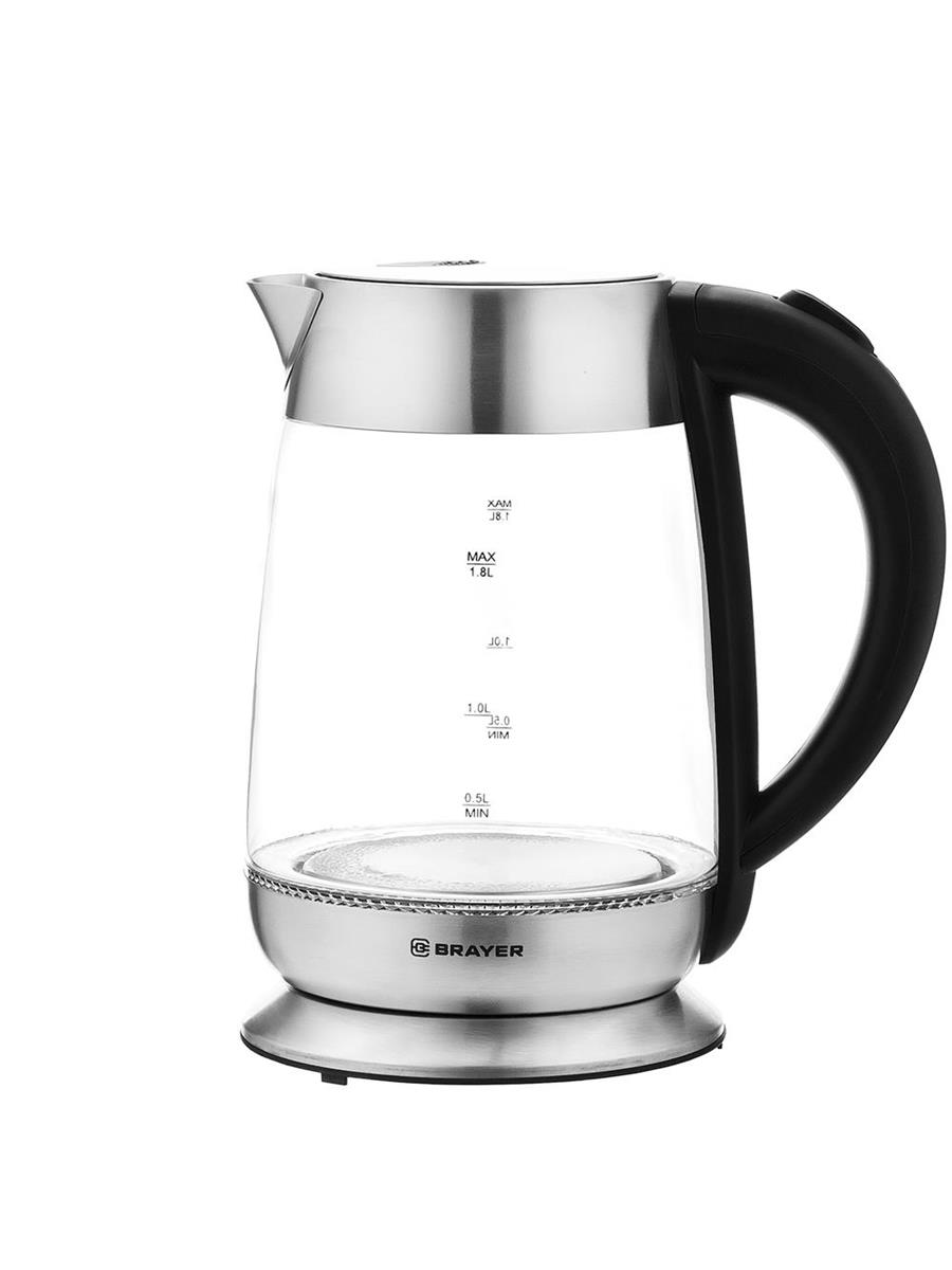 Электрический чайник Brayer BR6114 (2200 Вт/1,8 л /стекло/прозрачный, черный, серебристый) - Интернет-магазин Электроника: бытовая техника, электроника, товары для дома и др.