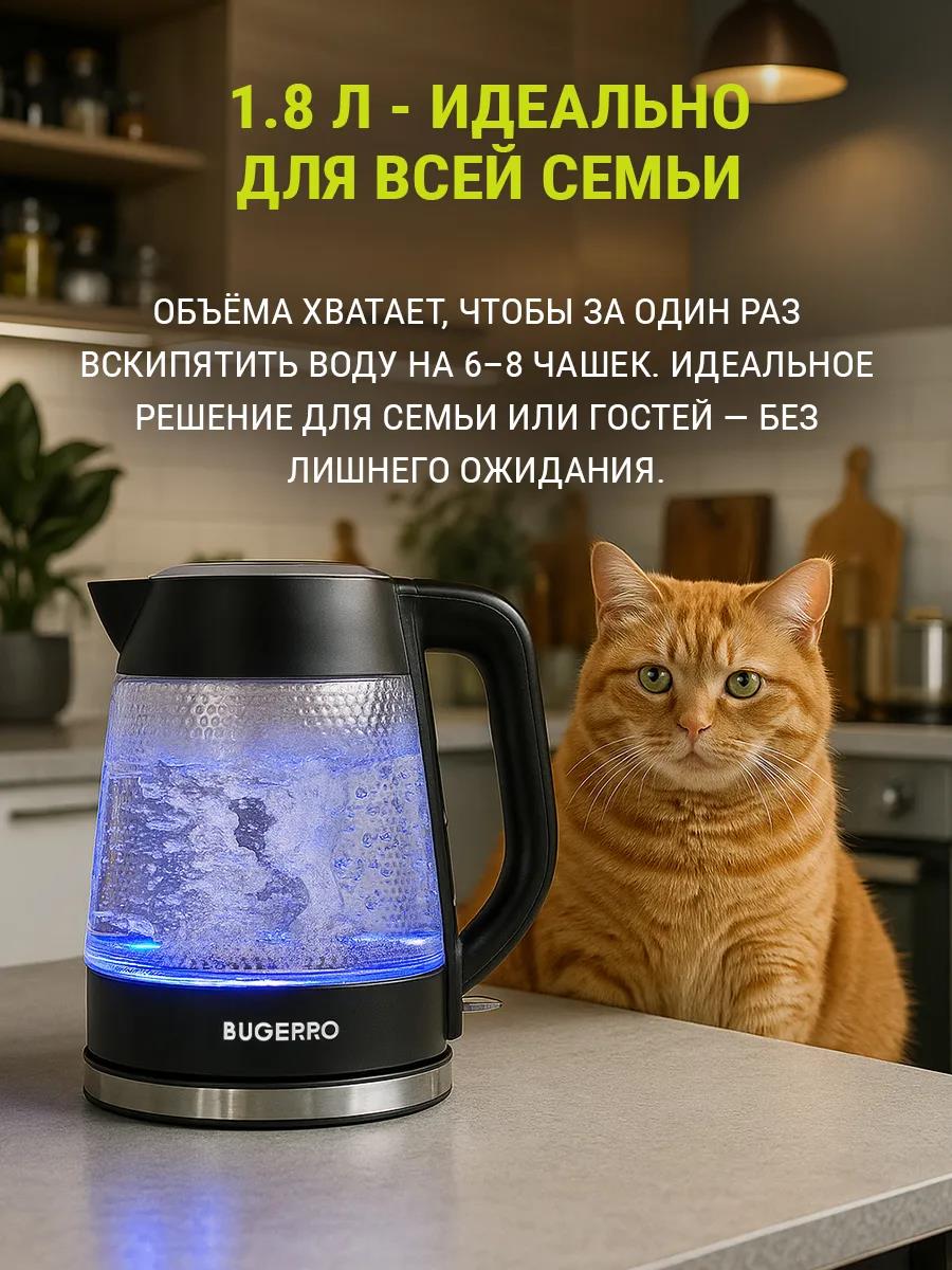 Электрический чайник BUGERRO BG-5607 (2100 Вт/1,8 л /стекло, пластик/прозрачный, черный) - Интернет-магазин Электроника: бытовая техника, электроника, товары для дома и др.