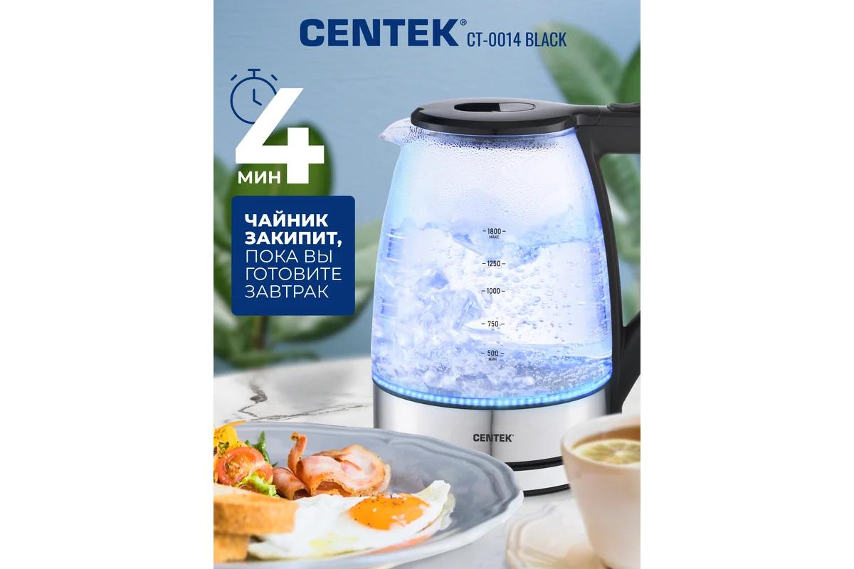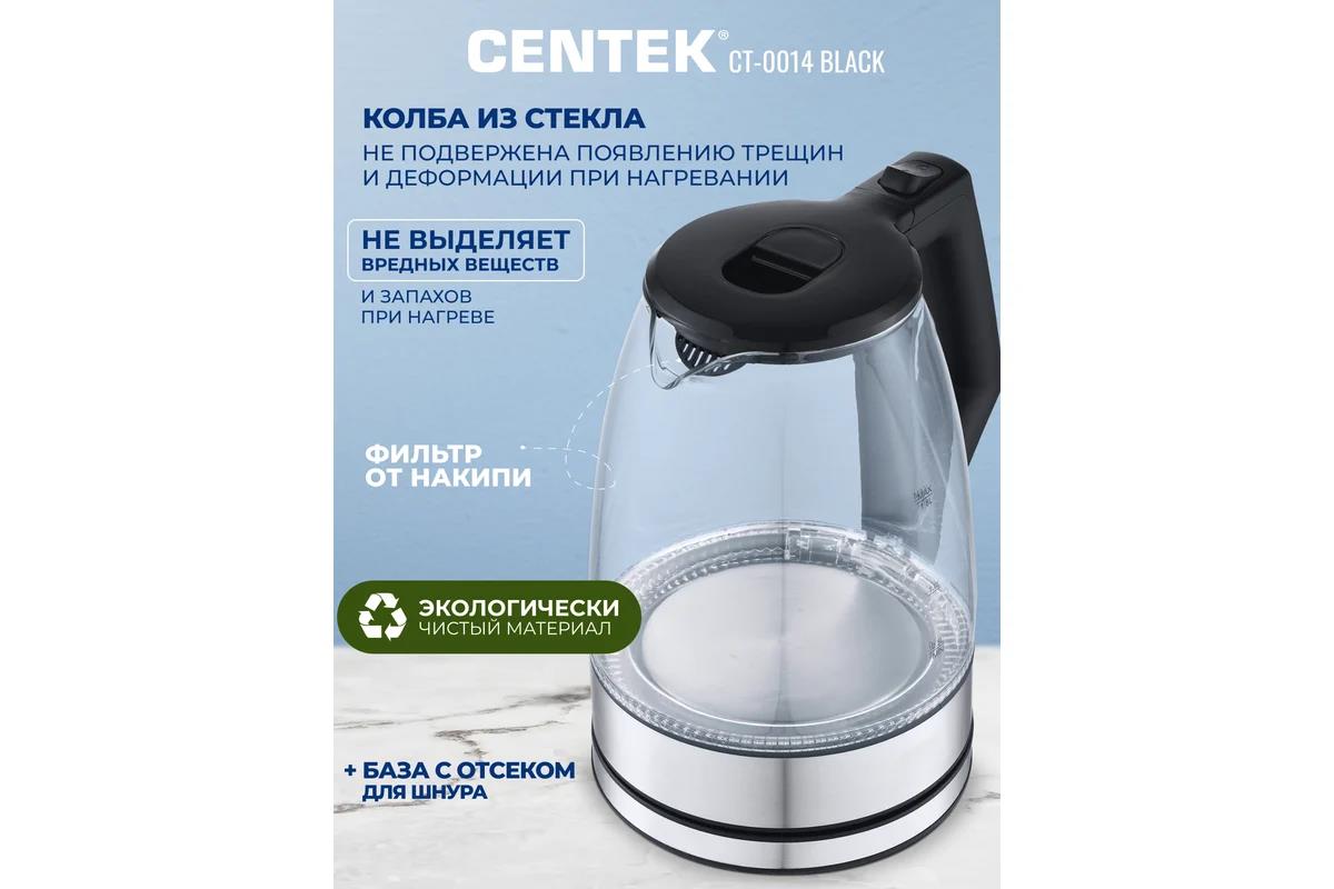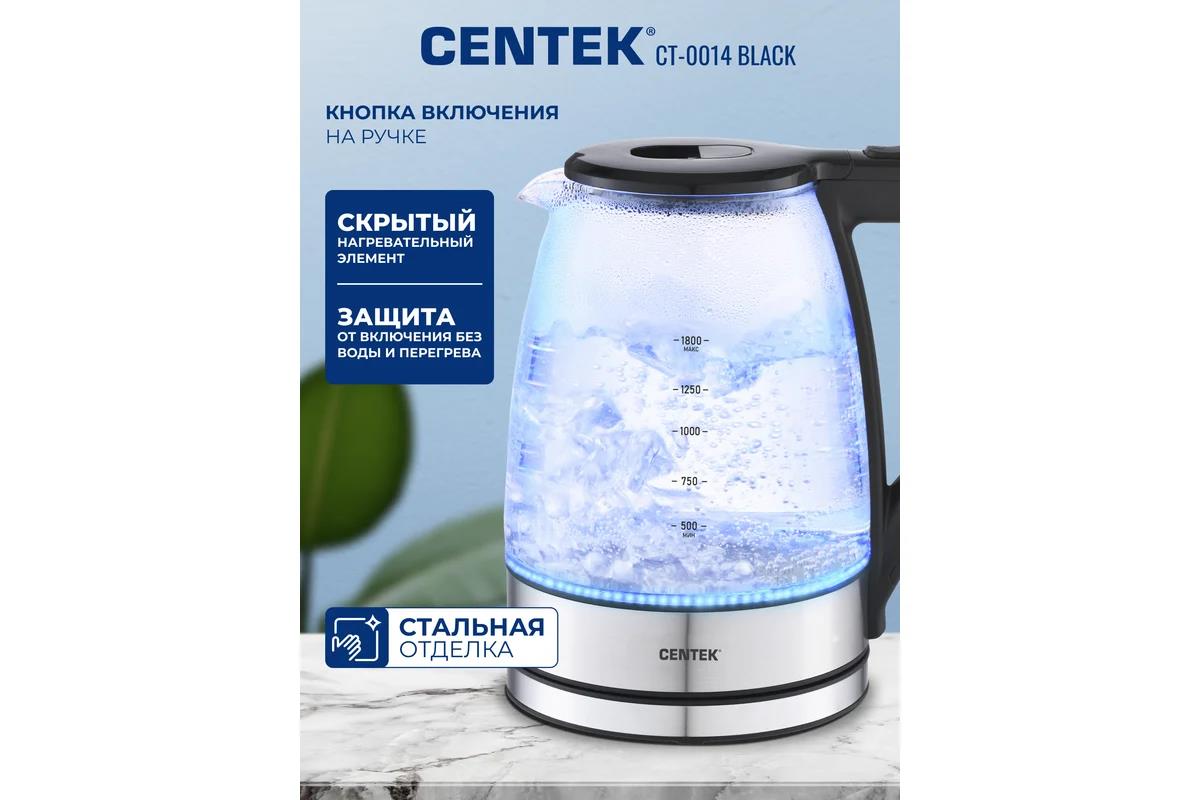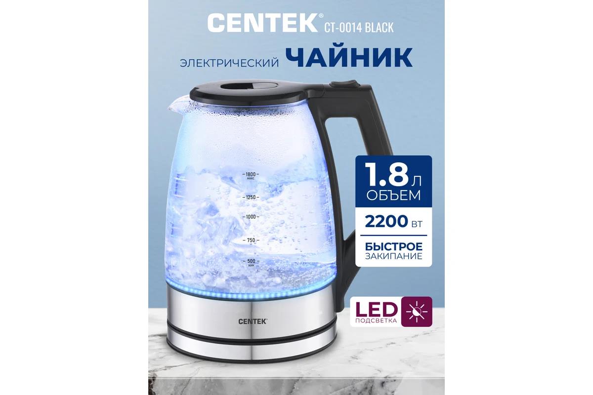 Электрический чайник CENTEK CT-0014 (2200 Вт/1,8 л /стекло, пластик, нержавеющая сталь/прозрачный, черный) - Интернет-магазин Электроника: бытовая техника, электроника, товары для дома и др.