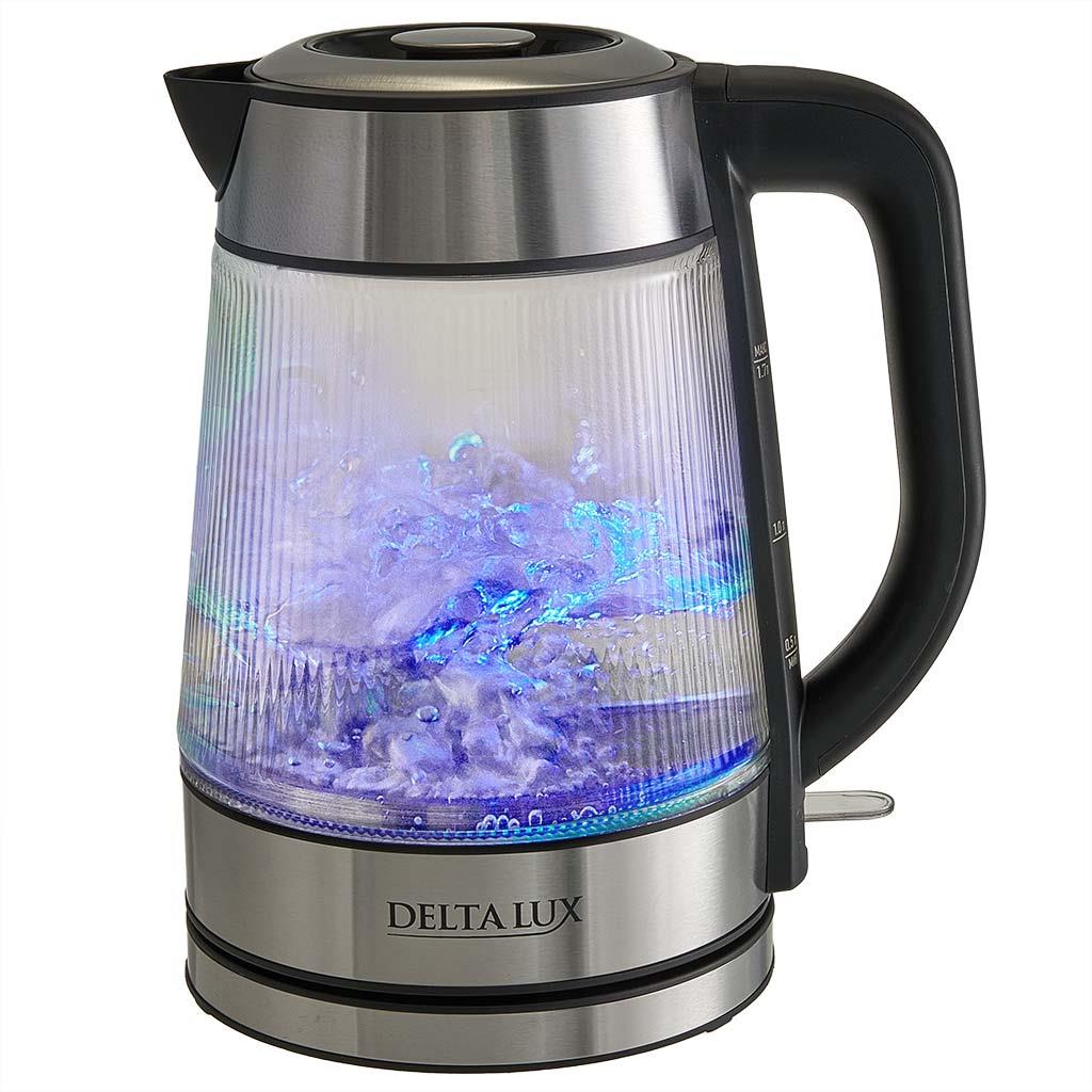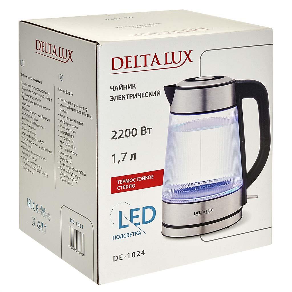 Электрический чайник DELTA LUX DE-1024 (2200 Вт/1,7 л /стекло/прозрачный, черный, нержавеющая сталь) - Интернет-магазин Электроника: бытовая техника, электроника, товары для дома и др.