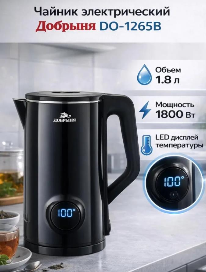 Электрический чайник Добрыня DO-1265B (2000 Вт/1,8 л //черный)