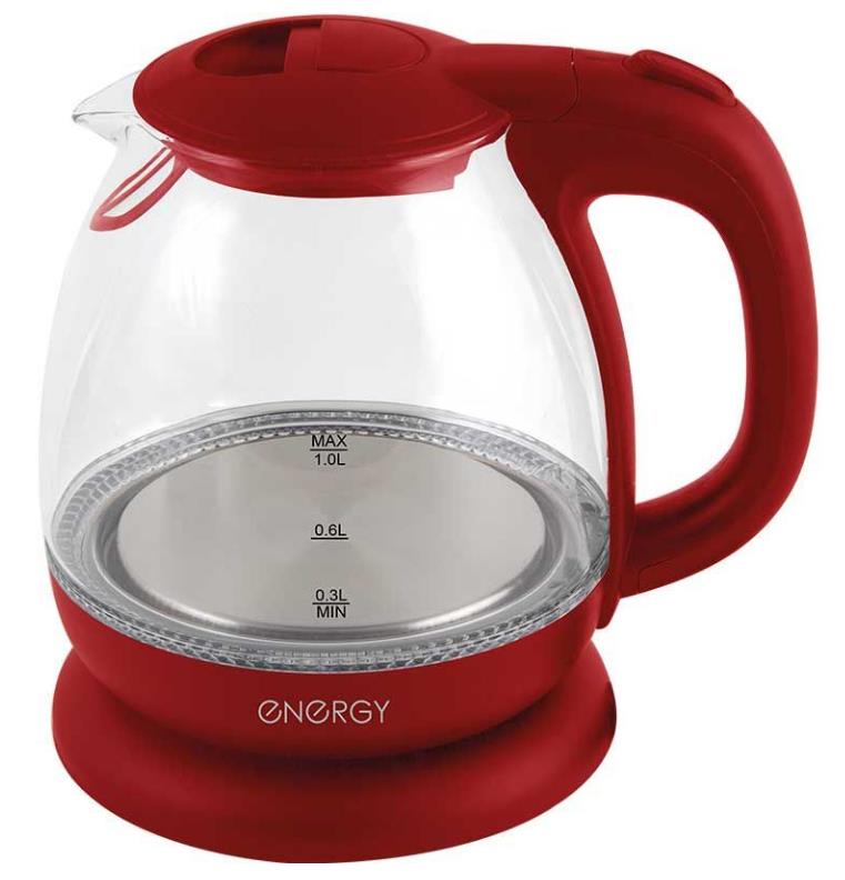 Электрический чайник Energy E-296 (1100 Вт/1 л /стекло, пластик/красный, прозрачный) - Интернет-магазин Электроника: бытовая техника, электроника, товары для дома и др.