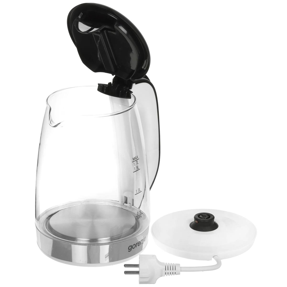 Электрический чайник Gorenje K17GXG 1.7л. 2200Вт (2200 Вт/1,7 л /стекло, нержавеющая сталь/прозрачный, белый, серебристый) - Интернет-магазин Электроника: бытовая техника, электроника, товары для дома и др.