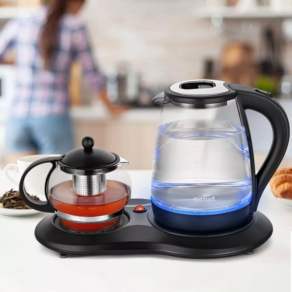 Электрический чайник Kitfort КТ-6178 Чайный набор (1500 Вт/2 л /стекло, пластик/прозрачный, черный) - Интернет-магазин Электроника: бытовая техника, электроника, товары для дома и др.