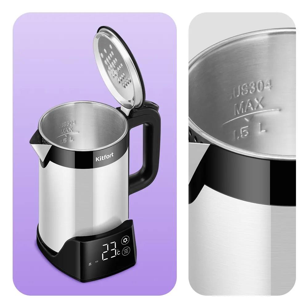 Электрический чайник Kitfort КТ-6691 (1500 Вт/1,5 л /пластик, нержавеющая сталь/черный, серебристый) - Интернет-магазин Электроника: бытовая техника, электроника, товары для дома и др.