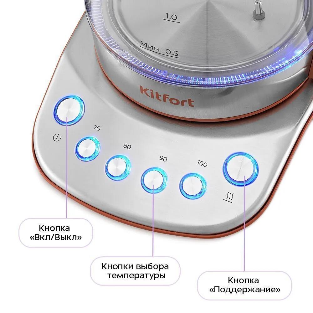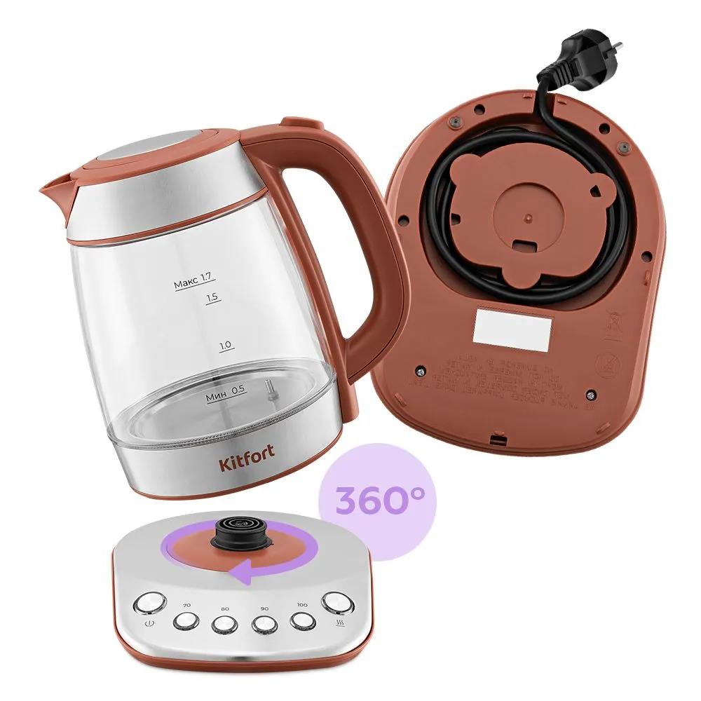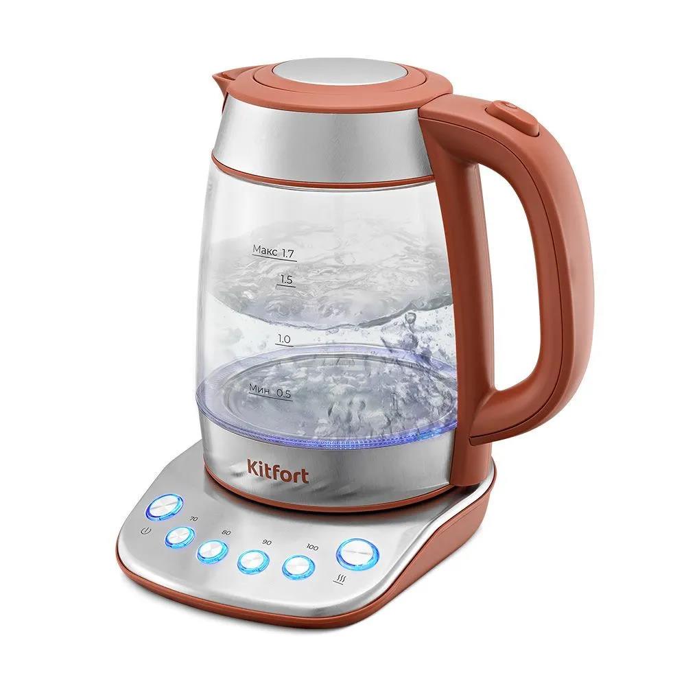 Электрический чайник Kitfort КТ-6787 (2200 Вт/1,7 л /стекло, металл, пластик/коричневый, прозрачный, серебристый) - Интернет-магазин Электроника: бытовая техника, электроника, товары для дома и др.