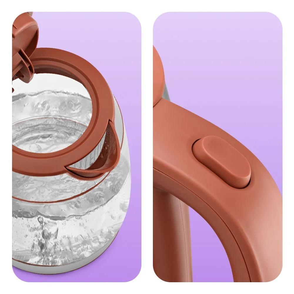 Электрический чайник Kitfort КТ-6787 (2200 Вт/1,7 л /стекло, металл, пластик/коричневый, прозрачный, серебристый)