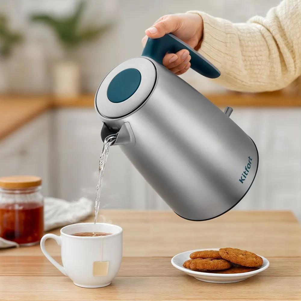 Электрический чайник Kitfort КТ-8725 1.7 л, 2200 В (2200 Вт/1,7 л /пластик, нержавеющая сталь/сталь, бирюзовый) - Интернет-магазин Электроника: бытовая техника, электроника, товары для дома и др.