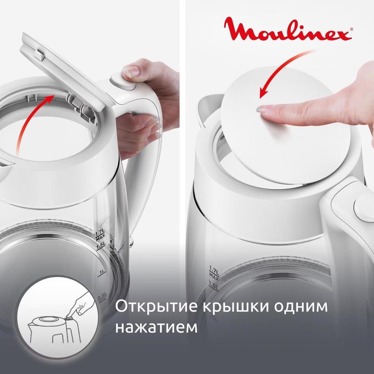 Электрический чайник Moulinex BY2S01F0 (2200 Вт/1,7 л /стекло, пластик/прозрачный, белый) - Интернет-магазин Электроника: бытовая техника, электроника, товары для дома и др.