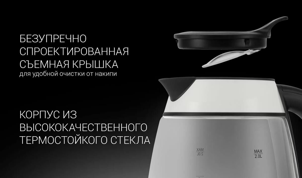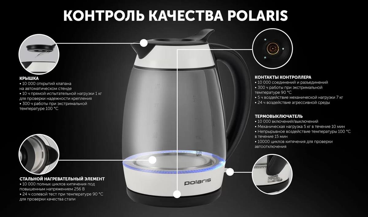 Электрический чайник Polaris PWK-2092СGL (2200 Вт/2 л /стекло/прозрачный, белый, черный) - Интернет-магазин Электроника: бытовая техника, электроника, товары для дома и др.