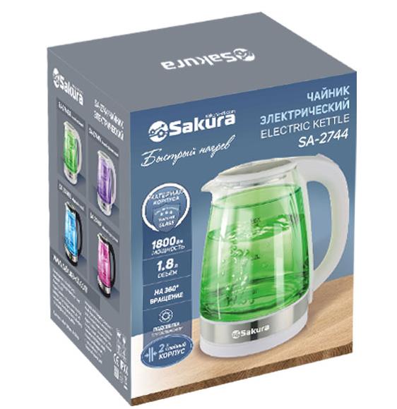 Электрический чайник Sakura SA-2744GR (1800 Вт/1,8 л /стекло, металл, пластик/зеленый, прозрачный, белый)