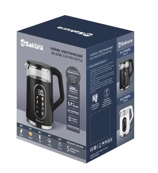 Электрический чайник Sakura SA-2749DBK (2200 Вт/1,7 л /стекло, металл, пластик/черный)