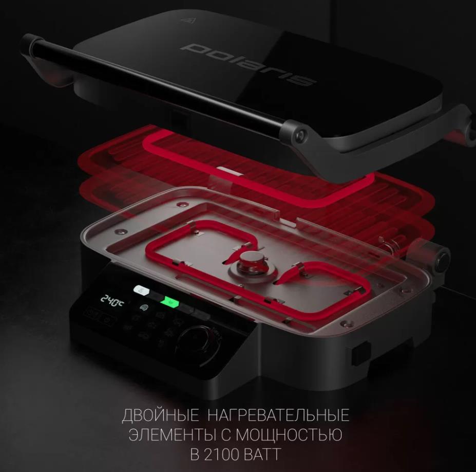 Электрический гриль Polaris PGP 3002DP Optimal Temp электрич., Черный, 2100 Вт