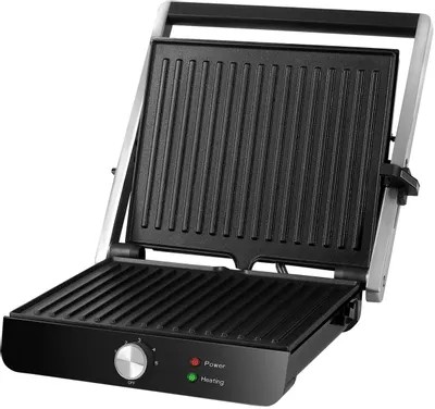 Гриль RED SOLUTION SteakPRO RGM-M815 выполнен в черном цвете. Управление температурой и временем приготовления происходит с помощью ручки. Вы сможете выставить любую температуру до 230°С. В гриле нет разделенных панелей, это значит, что вы сможете приготовить стейк размером со всю рабочую поверхность. В конструкции гриля предусмотрено открытие на 180°, то есть у вас будет возможность положить и извлечь кусок мяса любой толщины. Антипригарное покрытие – это возможность готовить без использования масла как мясо, так и овощи. Регулировка наклона рабочей поверхности поможет вам в процессе готовки удалять излишки сока из готовящегося блюда. Мощность гриля SteakPRO RGM-M815 2000 Вт. Этого достаточно чтобы в короткие сроки приготовить мясное ассорти на семью из 5 человек. Если вы не планируете всей семьей каждый день есть жареное мясо или рыбу, то лучше выбрать гриль с меньшей мощностью. Передняя панель оборудована индикатором готовности еды. Это сэкономит ваше время и ускорит приготовление. Так как каждый раз открывая гриль для проверки, вы снижаете температуру внутри устройства, что увеличивает время приготовления еды.