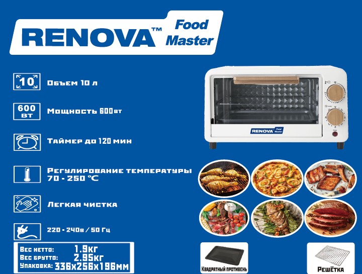Мини-печь Renova MO-10TW1 - идеальное решение для приготовления вкусных блюд в домашних условиях.
