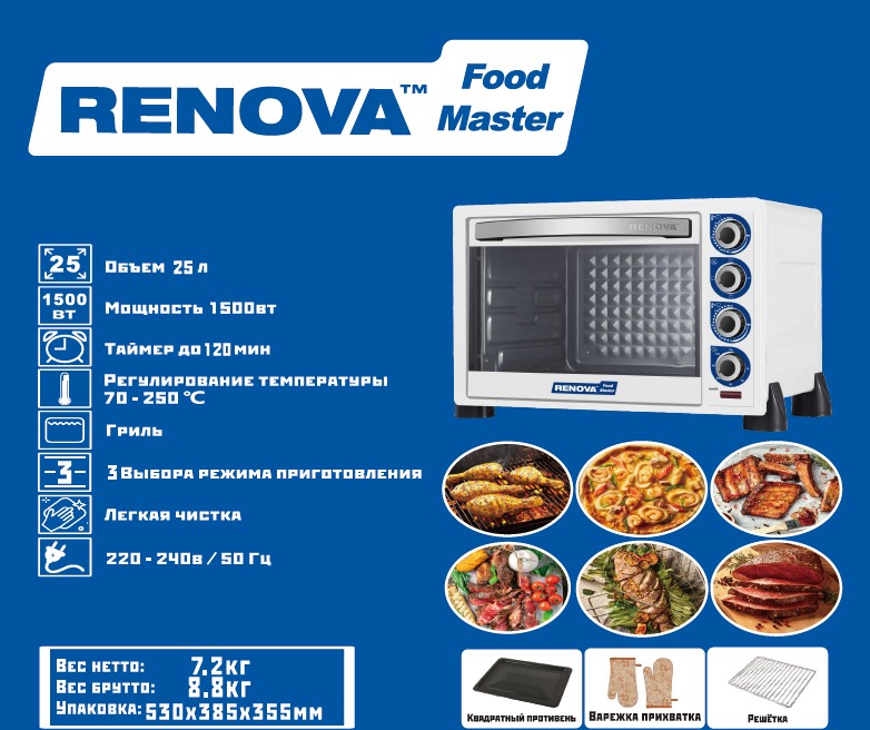 Электропечь Renova MO-25GTW1 (25 л /1500 Вт /белый)