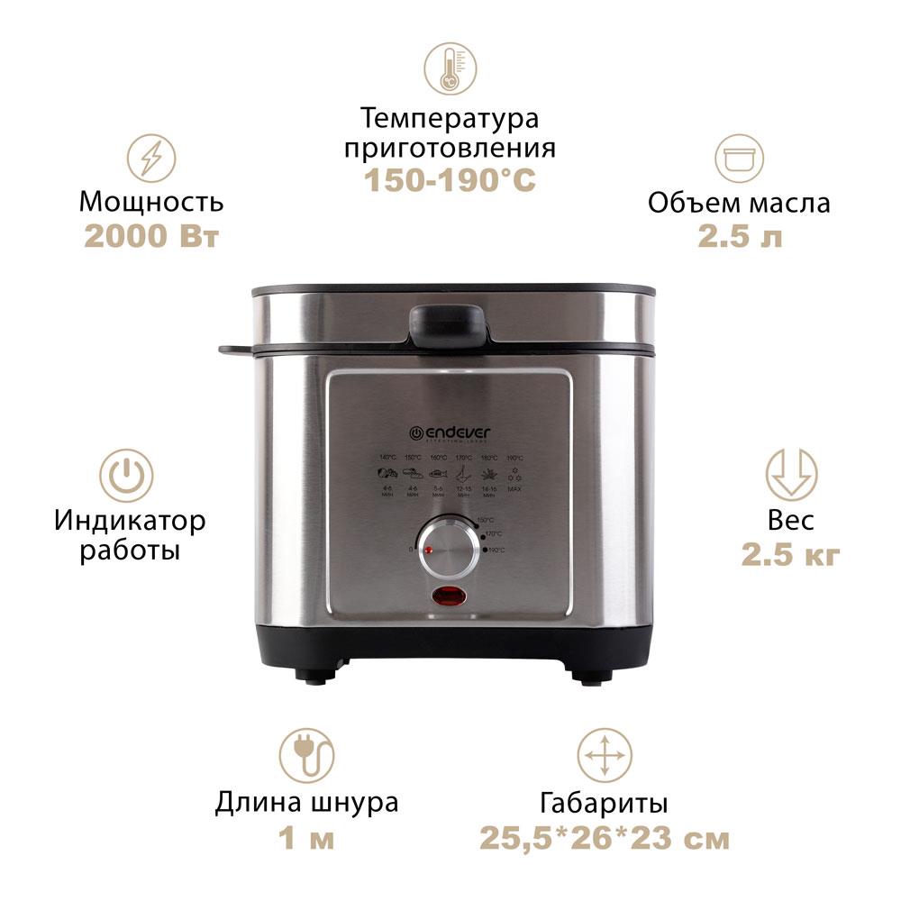 Фритюрница Endever Skyline FR-113 (2,5 л 2000 Вт серебристый, черный) - Интернет-магазин Электроника: бытовая техника, электроника, товары для дома и др.