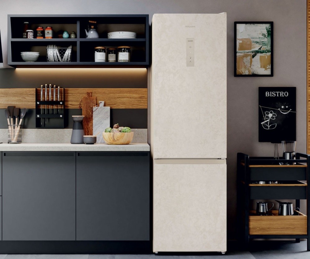 Двухкамерный двухметровый холодильник с нижней морозильной камерой Hotpoint HT 5200 AB в мраморном оттенке — это оптимальный баланс между стилем и практичностью. Общий полезный объем хранения в 325 литров позволят комфортно разместить внутри все необходимое для ваших кулинарных экспериментов.