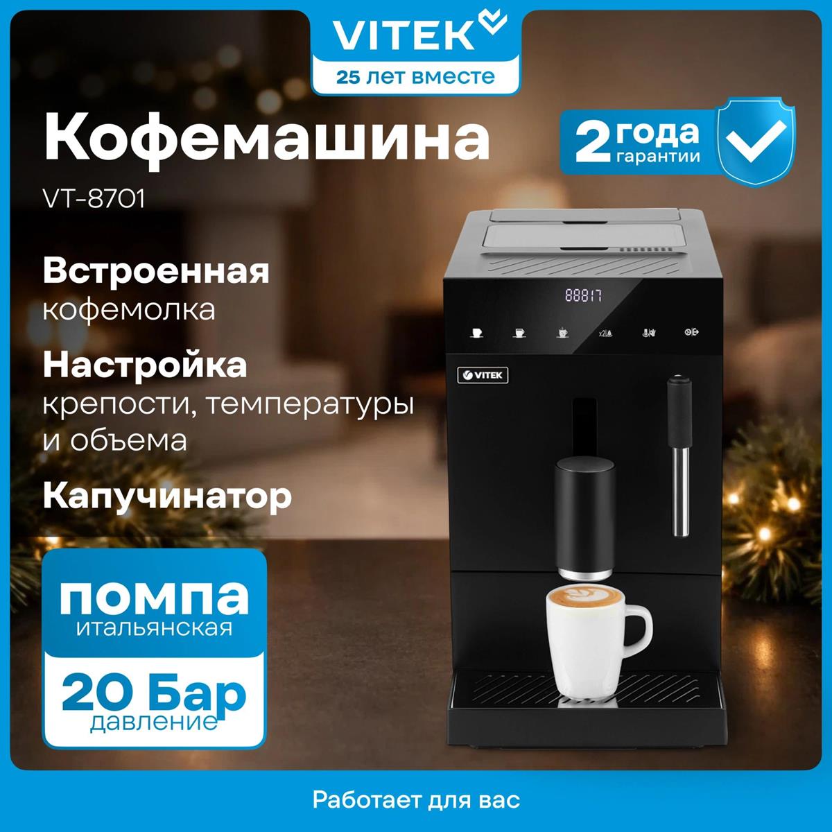 Кофемашина VITEK VT-8701 (1350 Вт /20 бар/черный) - Интернет-магазин Электроника: бытовая техника, электроника, товары для дома и др.