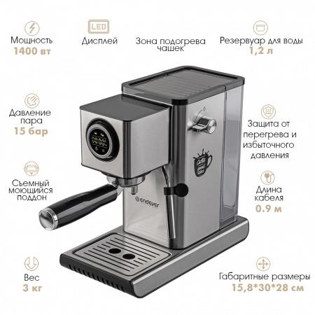 Кофеварка Endever Costa-1090 стальной (рожковая//1400 Вт )