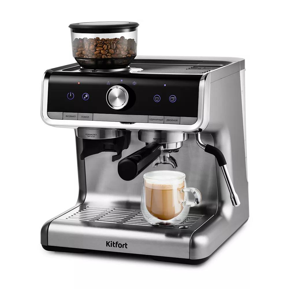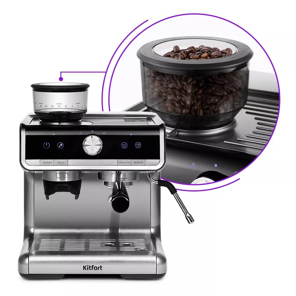 Кофеварка Kitfort КТ-789 серебристый, зерновой/молотый, 2.8 л, 1550 Вт, 15 Бар (рожковая/2,8 л /1550 Вт ) - Интернет-магазин Электроника: бытовая техника, электроника, товары для дома и др.