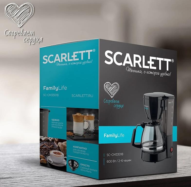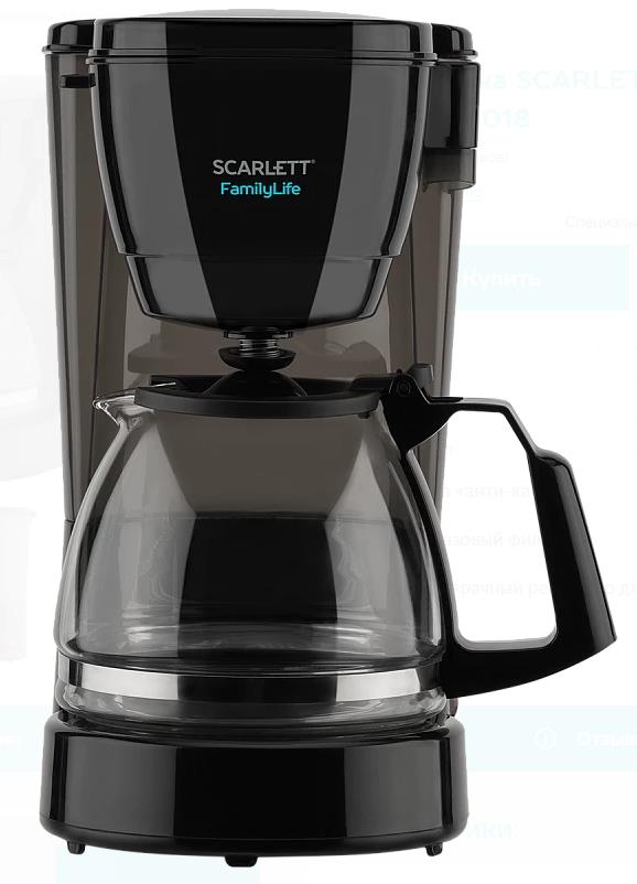 Кофеварка Scarlett SC-CM33018 черный (капельная/0,75 л /600 Вт ) - Интернет-магазин Электроника: бытовая техника, электроника, товары для дома и др.