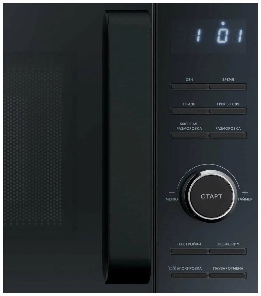 Микроволновая печь с грилем HMG-DG207BA в черном корпусе оснащена электронной системой управления. Дверца открывается налево, с помощью внешней ручки. Объем камеры микроволновой печи 20 л, внутренняя камера с поворотным столом позволит быстро подогреть или приготовить блюдо. Эко режим для установления функции энергосбережения. На корпусе микроволновой печи предусмотрена также функция блокировки для защиты от детей. Есть несколько режимов работы: режим микроволн, гриля, одновременный режим работы гриля и микроволн.