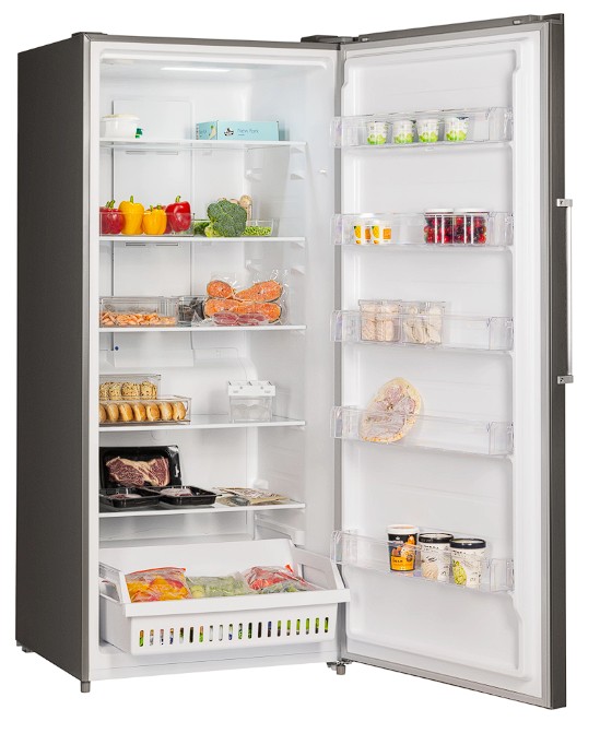 Невероятно вместительная модель вертикального морозильника общим объемом 660 л, высотой 189,5 см и шириной 84 см в благородном серебристом цвете станет гармоничным дополнением современной кухни. Универсальный дизайн и возможность перевешивания двери позволят легко адаптировать технику под любое пространство в сравнении с горизонтальными морозильниками большого объема. Удобная ручка и продуманный механизм облегченного открытия двери делает использование ещё комфортнее. Морозильник сохраняет стабильную работу при температуре окружающей среды до -18°C, что делает его отличным решением не только для дома, но и для торговых или складских помещений.
