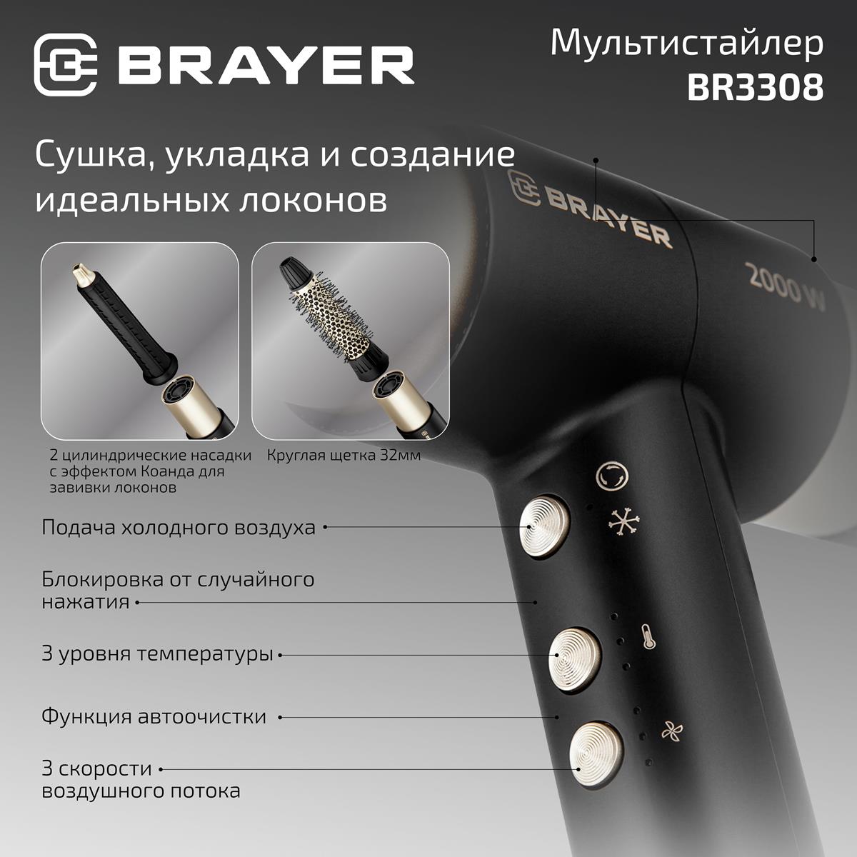 Мультистайлер Brayer BR3308 (2000 Вт /черный) - Интернет-магазин Электроника: бытовая техника, электроника, товары для дома и др.