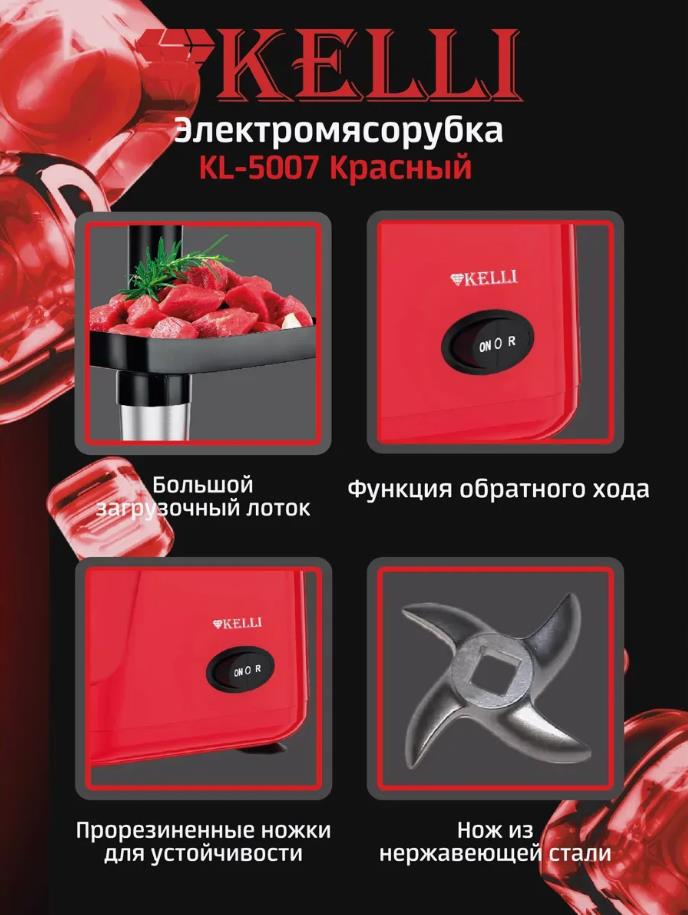 Мясорубка Kelli KL-5007 (2400 Вт /3 кг/мин/красный) - Интернет-магазин Электроника: бытовая техника, электроника, товары для дома и др.