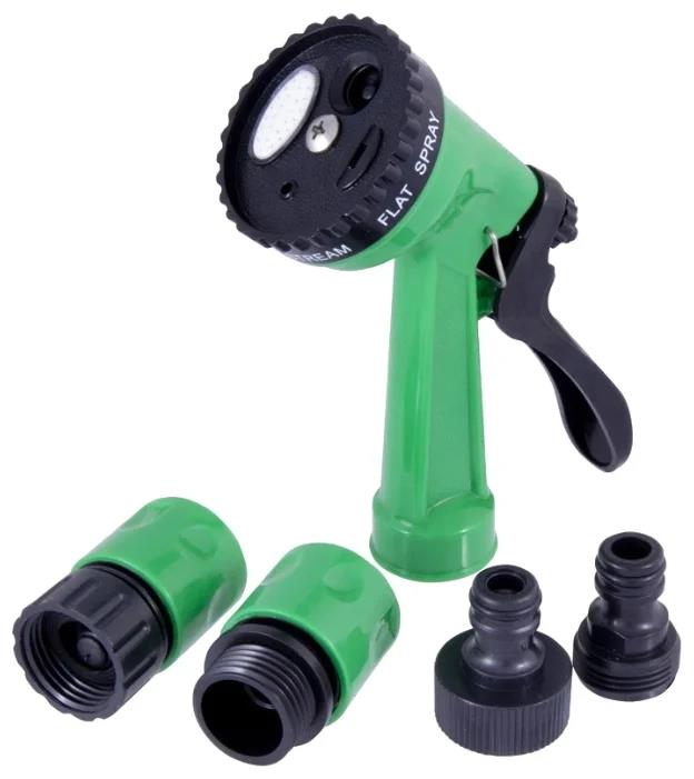 Набор для полива 3/4" Park HL062 5 предметов, под резьбу 330102 - приспособление для полива садового или дачного участка. Удобство использования. Адаптеры и соединители обеспечивают быстрое подключение к шлангу диаметром 3/4 дюйма. Корпус пистолета и адаптеров выполнен из ударопрочного пластика для долгого срока службы. Комплектация: пистолет для полива - 1 шт, адаптер на 3/4 дюйма с внутренней резьбой - 1 шт, адаптер на 3/4 дюйма с внешней резьбой - 1 шт, соединитель для шланга 3/4 дюйма (разъем-папа) - 1 шт, соединитель для шланга 3/4 дюйма с автостопом (разъем-мама) - 1 шт. Пистолет оснащен 4 режимами для оптимального полива. Дополнительные характеристики: Диаметр штуцера: 16 мм; Давление на входе: 2-6 бар; Площадь полива: 1-6 м2.