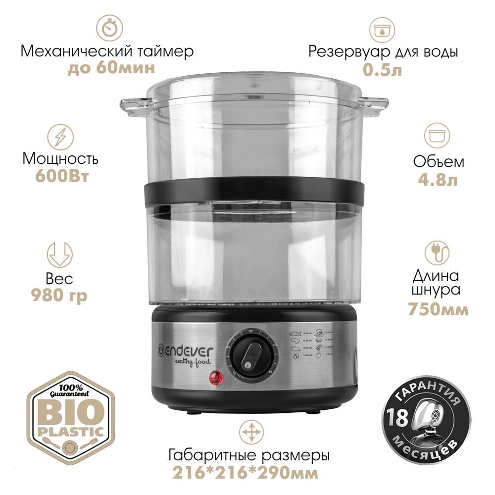 Пароварка Endever Vita-165 (черный, стальной) - Интернет-магазин Электроника: бытовая техника, электроника, товары для дома и др.