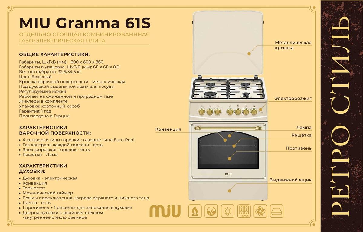 Плита MIU Granma 61S,бежевый - Интернет-магазин Электроника: бытовая техника, электроника, товары для дома и др.