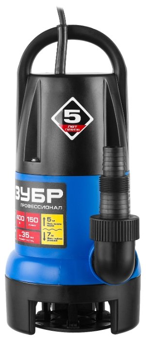 Погружной дренажный ЗУБР НПГ-Т7-400 400 Вт 5 м грязная)
