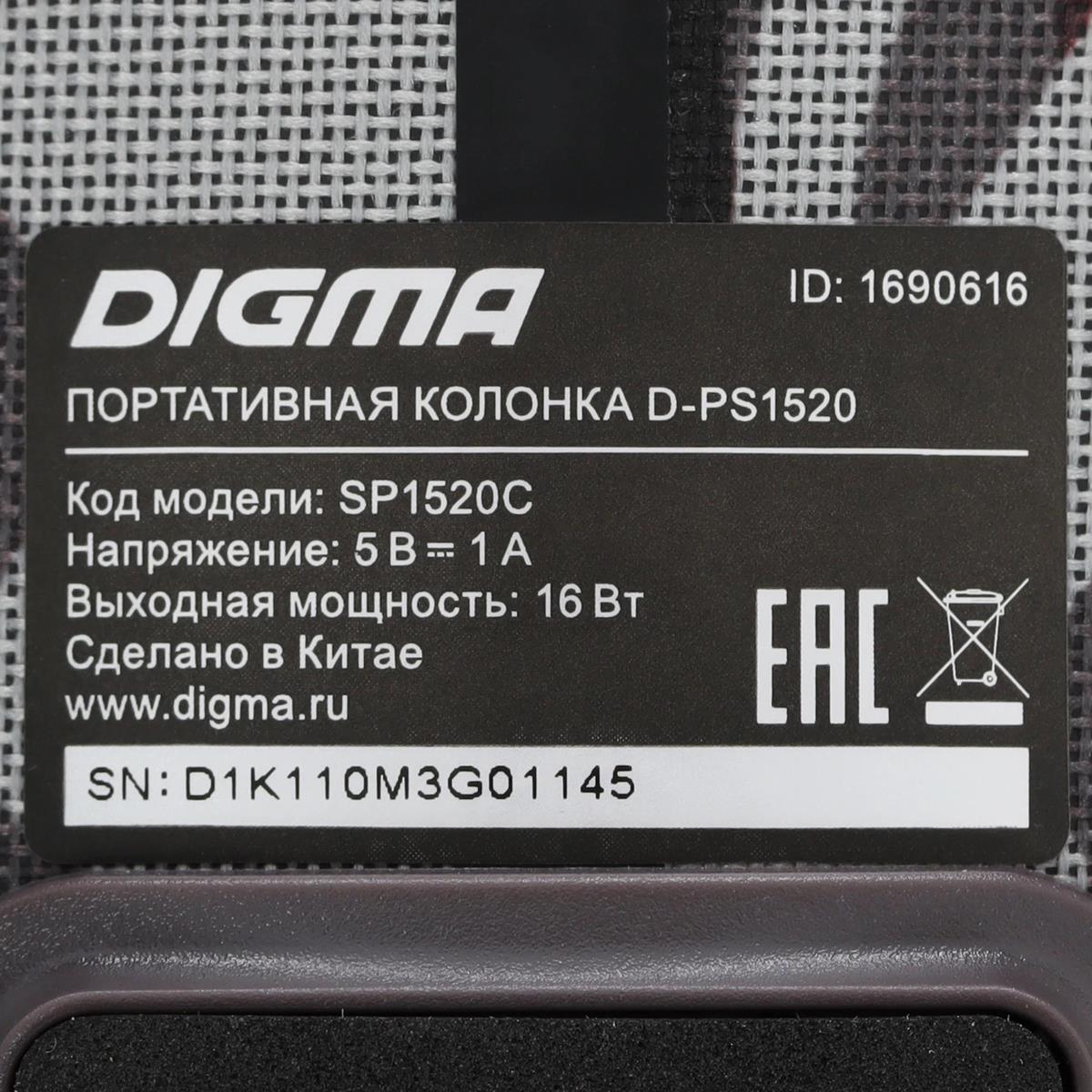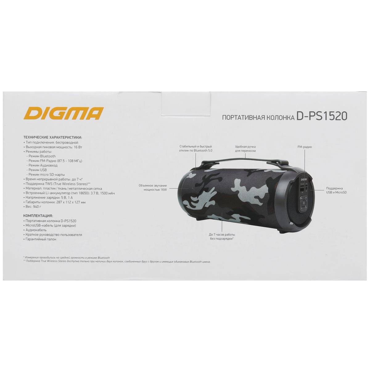Портативная акустика Digma D-PS1520 16 Вт 1.0 BT 10м 1500mAh ( камуфляж)