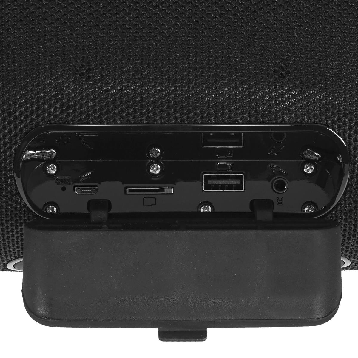 Портативная колонка HOCO HC5 Enjoy sports выполнена в черном корпусе из пластика и ткани. Акустическая система состоит из двух динамиков выходной мощностью 15 Вт. Они формируют детализированный звук с глубоким басом. Встроенный микрофон предусматривает ответы на звонки. Беспроводная синхронизация с источником звука выполняется посредством технологии Bluetooth. Также в колонке HOCO HC5 Enjoy sports есть FM-проигрыватель, считыватель карты памяти MicroSD, разъем USB и линейный вход AUX. Одного заряда аккумулятора емкостью 3600 мА*ч хватает для 4 часов непрерывного воспроизведения при 80% громкости. В комплекте поставляются кабели и плечевой ремень.