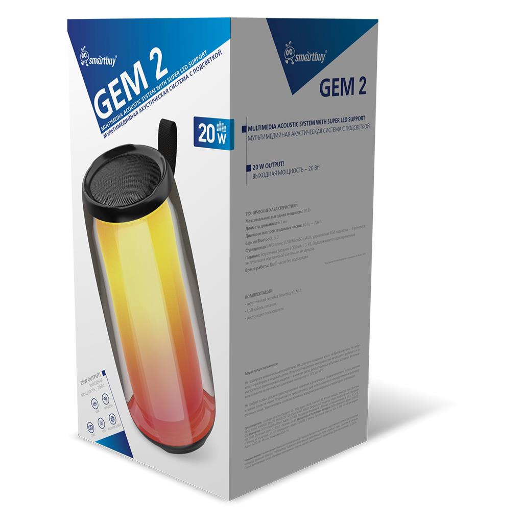 Портативная акустика SmartBuy (SBS-5800) GEM 2 (20 Вт черный) - Интернет-магазин Электроника: бытовая техника, электроника, товары для дома и др.