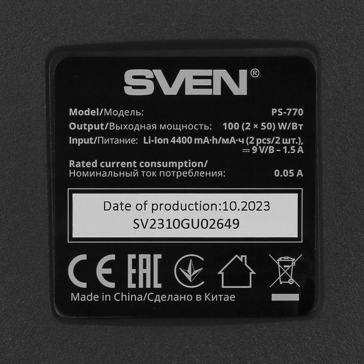 Портативная акустика Sven PS-770 (100 Вт черный) - Интернет-магазин Электроника: бытовая техника, электроника, товары для дома и др.