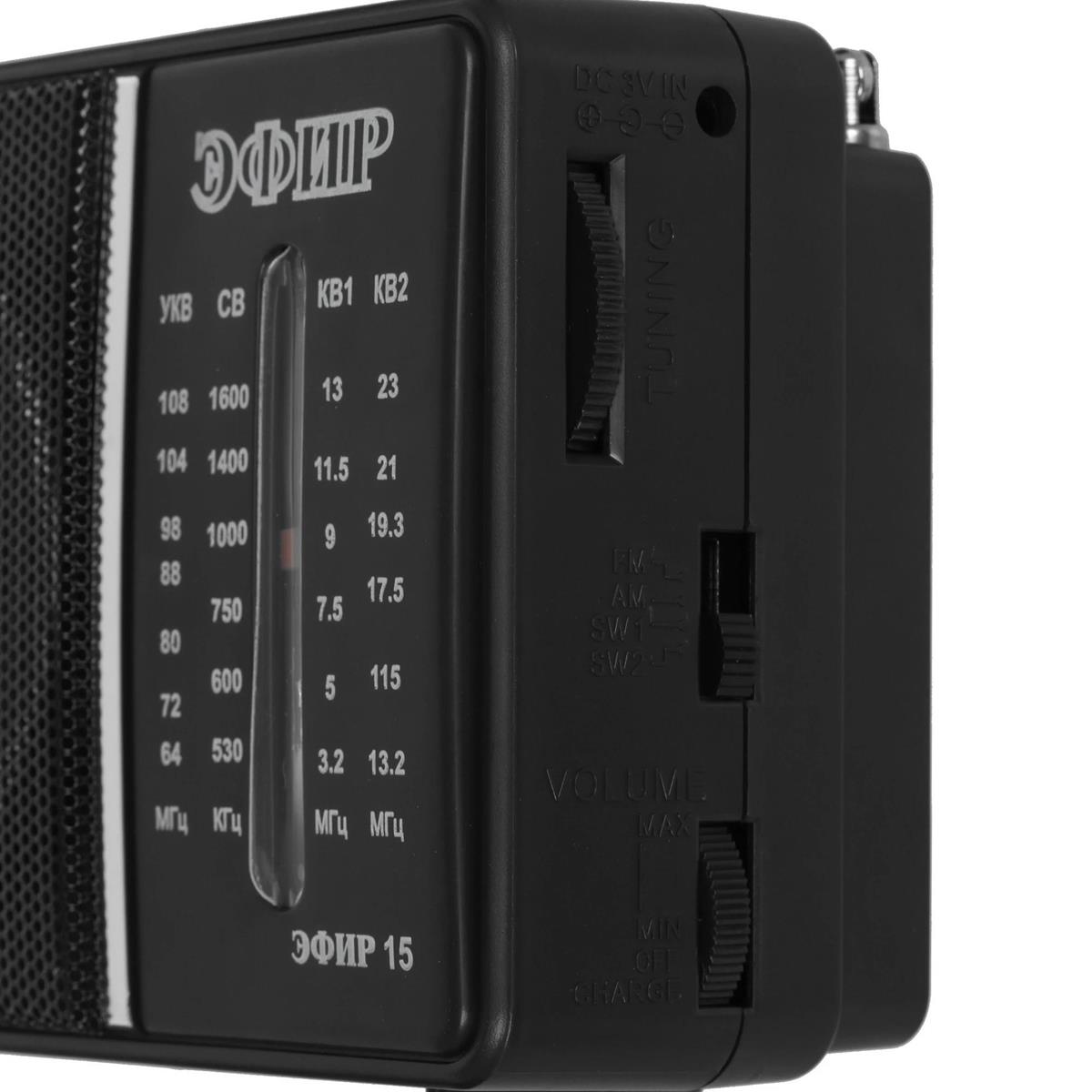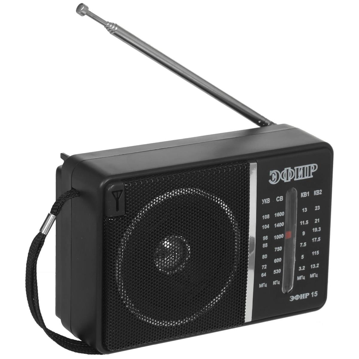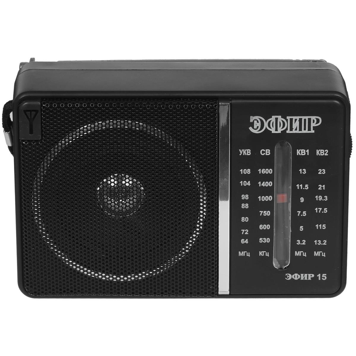Радиоприемник ЭФИР 15, УКВ 64-108МГц, СВ 530-1600КГц, КВ1,КВ2 бат. 2*R20(D) черный - Интернет-магазин Электроника: бытовая техника, электроника, товары для дома и др.