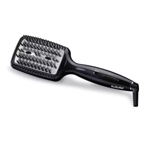 С помощью расчески-выпрямителя для укладки волос Babyliss HSB101E можно с минимальными затратами времени и усилий создать в домашних условиях красивую прическу. Прибор представляет собой расческу, оснащенную зубчиками различных типов. Твёрдые зубчики обеспечивают эффективное расчесывание, силиконовые делают использование прибора особенно удобным, а керамические отвечают за выпрямление. Разработчики предусмотрели функцию ионизации, обеспечивающую особенно бережный уход за волосами, защищающую их от обезвоживания. Ионизация гарантирует волосам здоровый блеск, снижает их наэлектризованность. Прибор способен работать в трех температурных режимах, поэтому его можно использовать на разных типах волос. Светодиодный индикатор наглядно показывает выбранный режим.