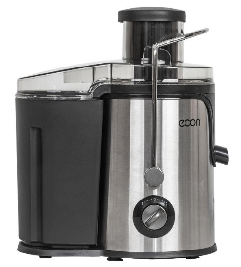 Соковыжималка центробежного типа Econ ECO-051JC – простое в использовании устройство мощностью 800 Вт. Оно эффективно перерабатывает и мягкие, и твёрдые плоды, позволяя получить сок из ягод, фруктов и овощей. продуманная конструкция У прибора надёжное механическое управление – поворотный регулятор. С его помощью вы сможете выбрать одну из двух скоростей работы.