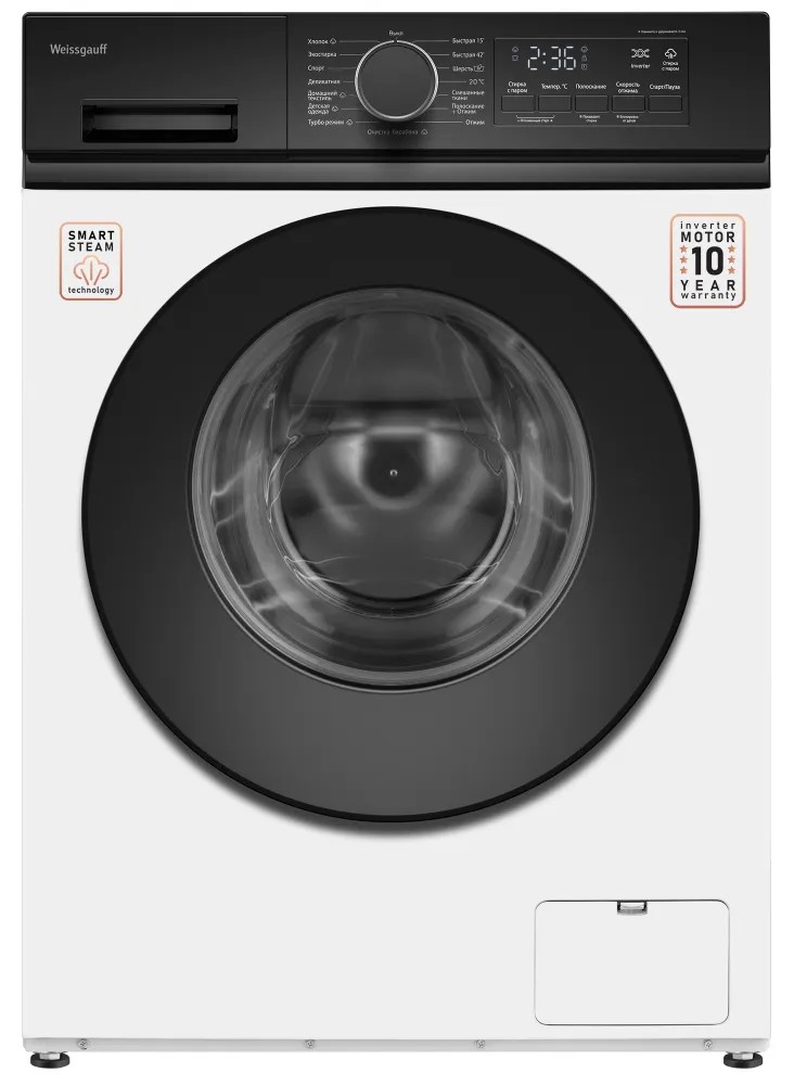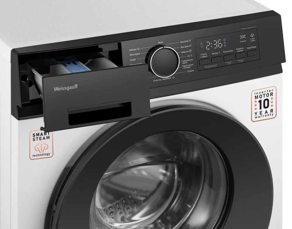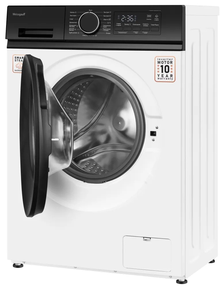 Стиральная машина Weissgauff WM 41106 Inverter Steam, белый (фронтальная, 6 кг, 1000 об/мин ) - Интернет-магазин Электроника: бытовая техника, электроника, товары для дома и др.