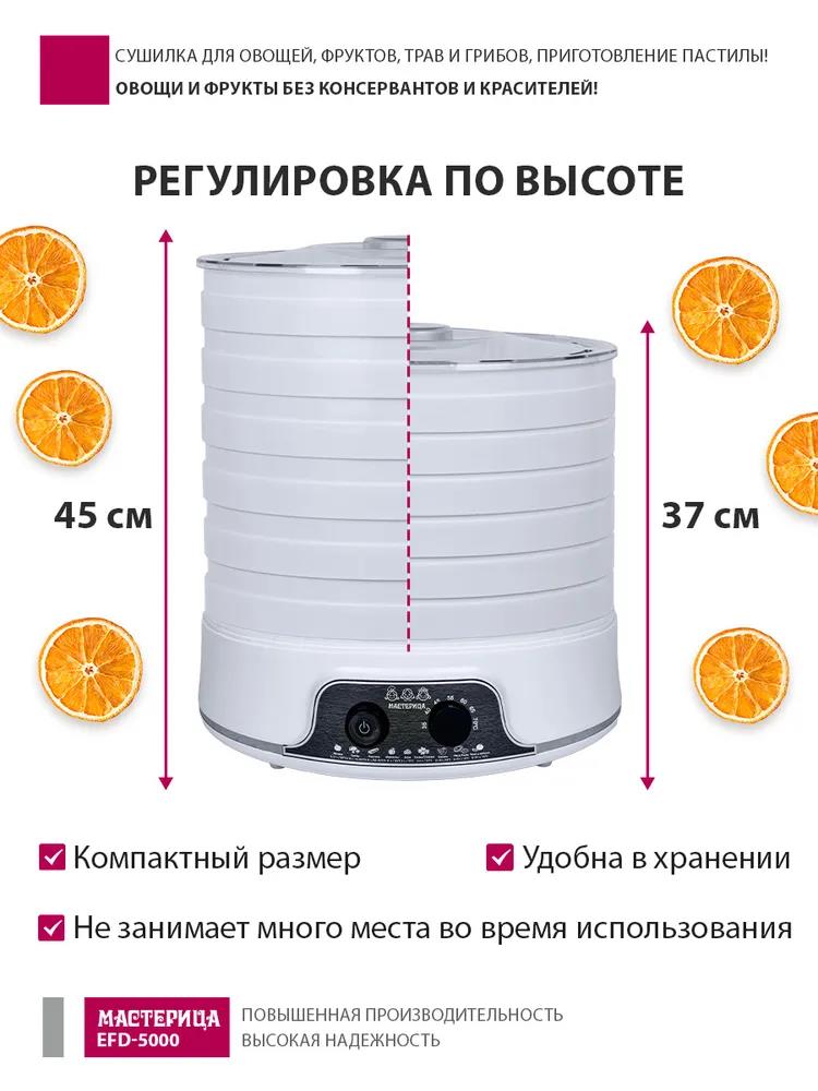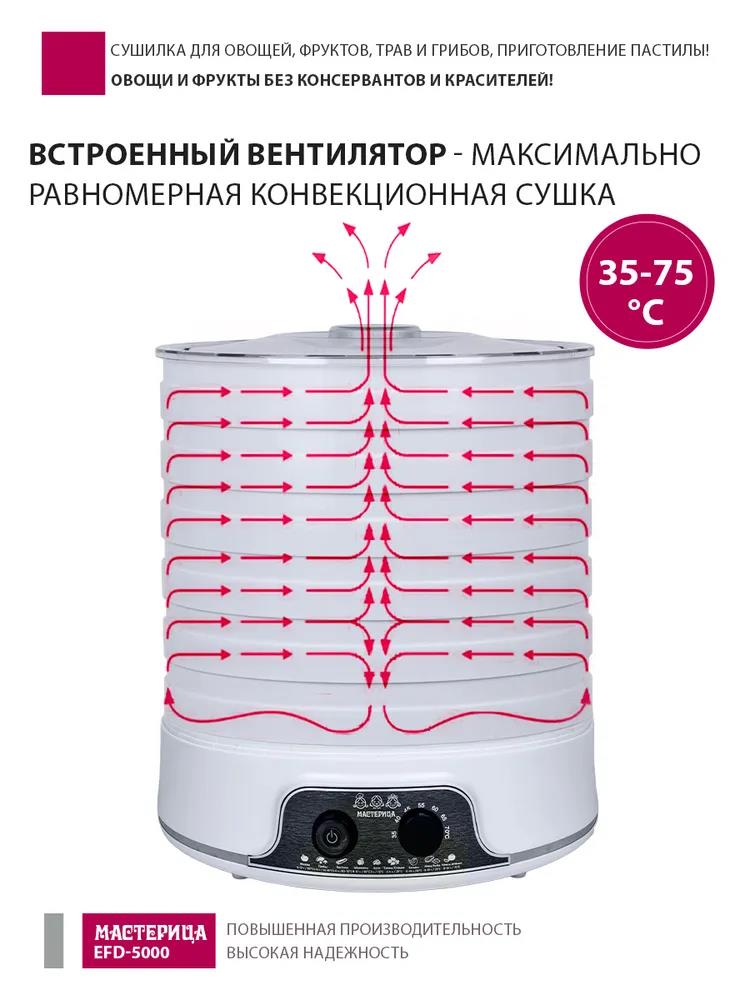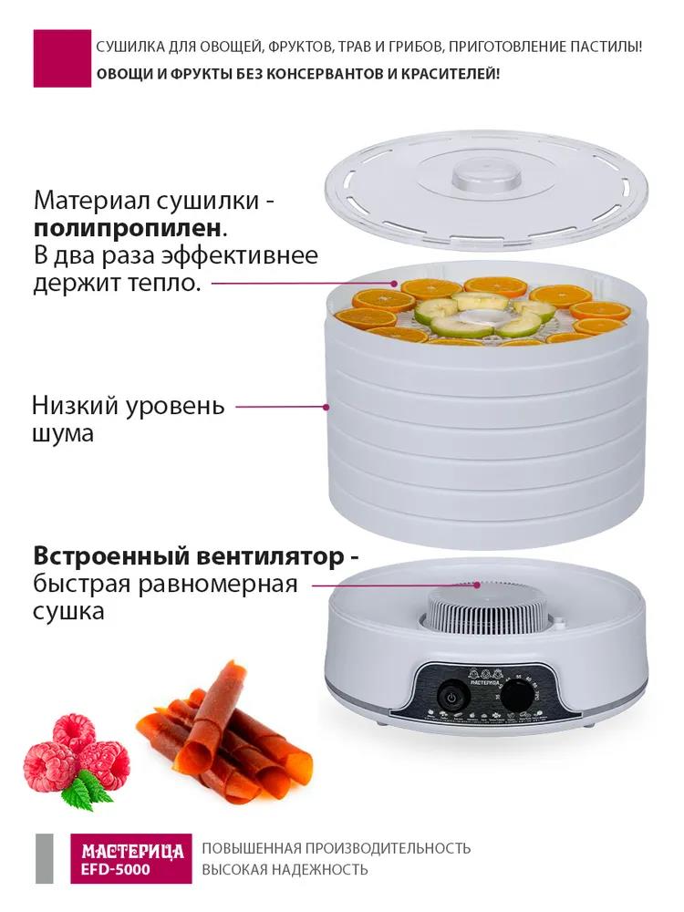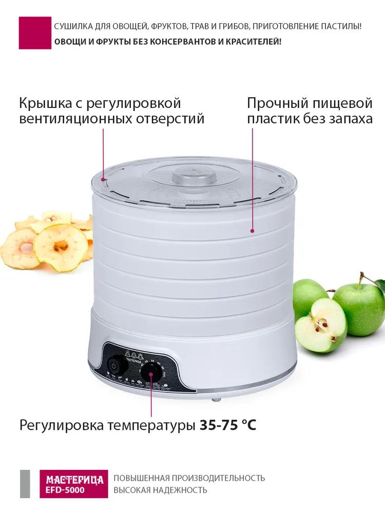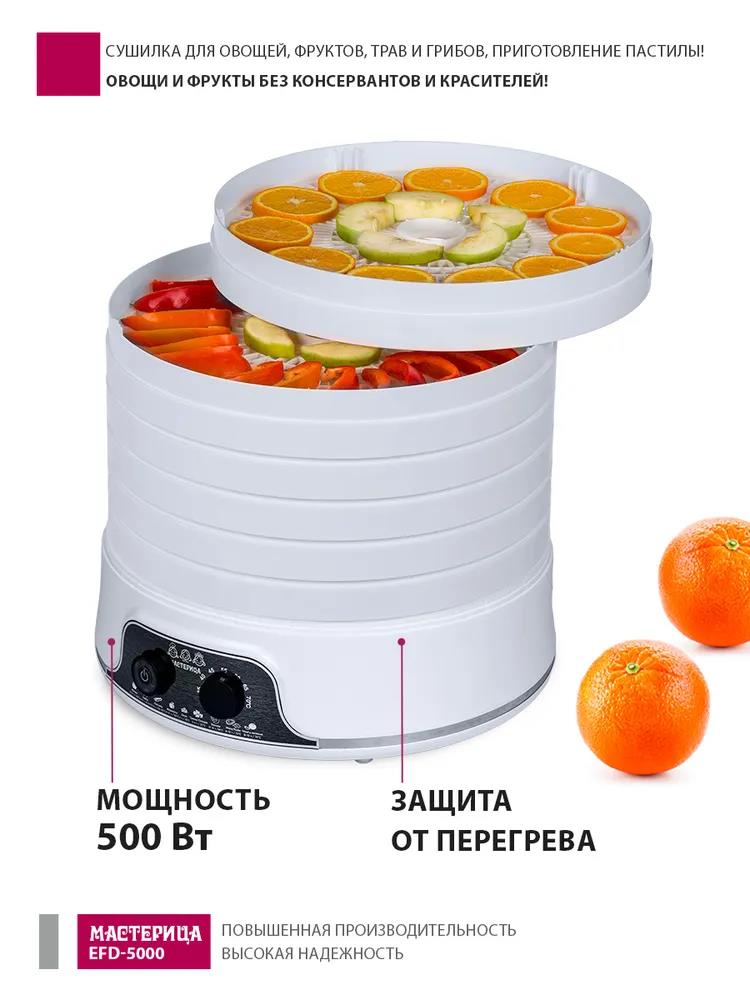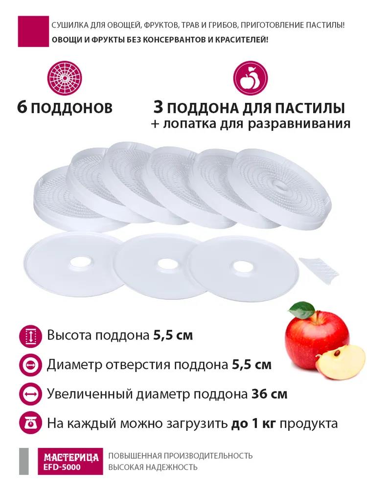 Сушилка для овощей Мастерица EFD-5000, 6 белых поддонов + 3 поддона д/пастилы 500Вт, увеличенный D поддона 36 см (поддонов 6 шт, 500 Вт , белый) - Интернет-магазин Электроника: бытовая техника, электроника, товары для дома и др.